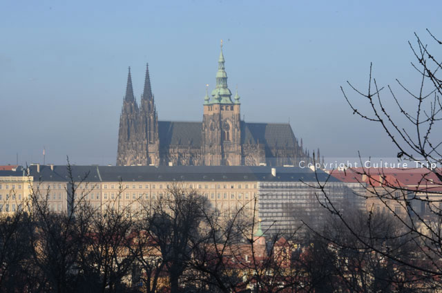 Le château et la cathédrale Saint-Guy vus depuis la colline de Petřín