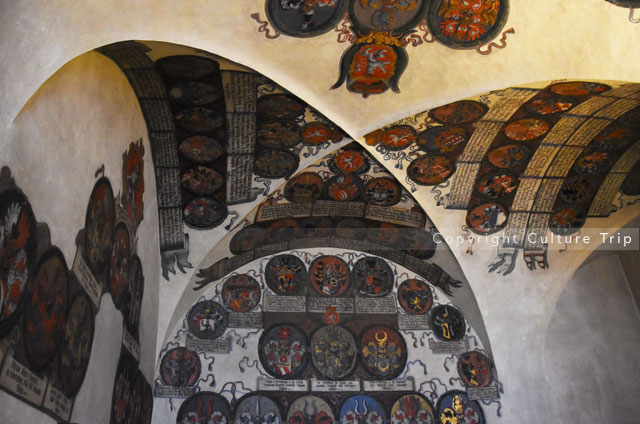 La salle de la Couronne est protégée par une porte comprenant sept serrures dont les clés sont confiées à sept personnalités : le président de la République tchèque, le Premier ministre, l'Archevêque de Prague, les présidents des deux chambres du Parlement, le doyen du chapitre de la cathédrale et le maire de Prague.