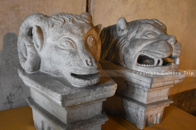L’hémisphère supérieur est orné de scènes de l’histoire de David et de son combat contre Goliath. L’hémisphère inférieur représente des scènes de la Genèse et notamment celle du Créateur mettant en garde Adam et Ève contre la tentation de l’arbre de la connaissance.