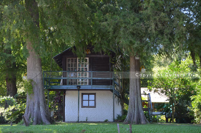 Sur de petites îles à la végétation luxuriante, de jolies maisons ont été construites sur pilotis.