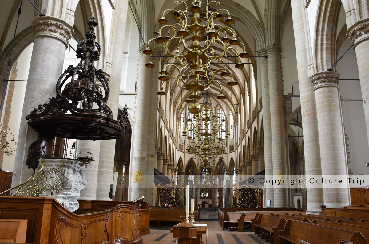 Nieuwe Kerk a été construite aux XIVe et XVe siècles et affectée au culte protestant à partir de 1572. L’édifice, de style gothique, est surmonté par une haute tour de brique et de pierre blanche dotée d’une flèche.