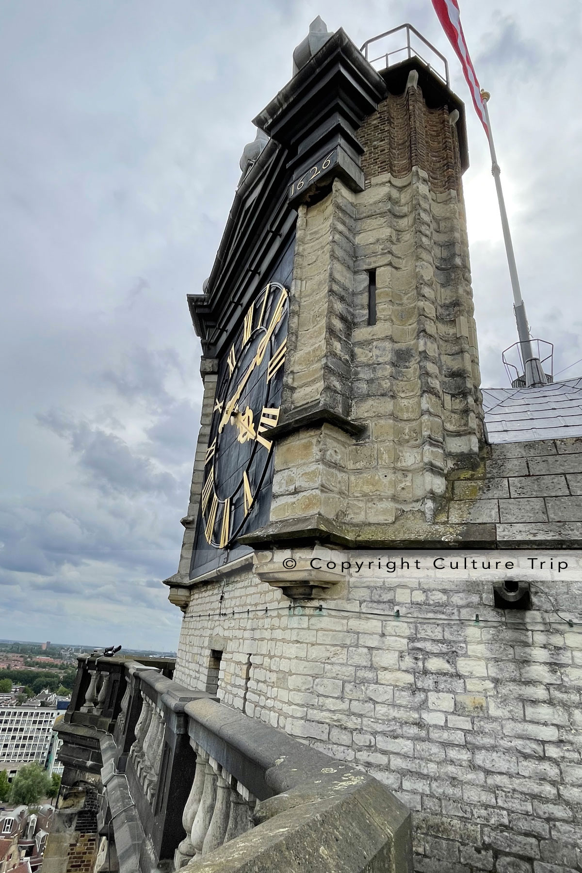 La tour est haute de 65 mètres. Il faut gravir 275 marches pour atteindre le haut de la tour d'où on peut apercevoir les ports de Dordrecht et la jonction des trois rivières.
