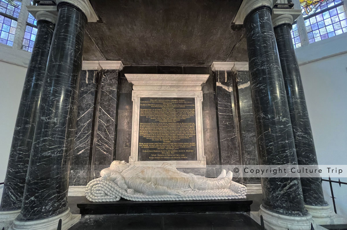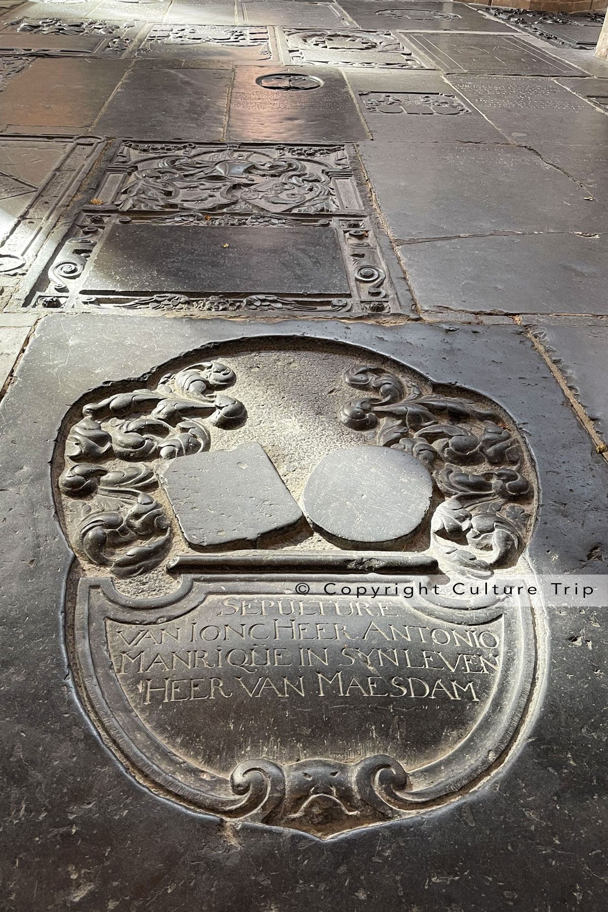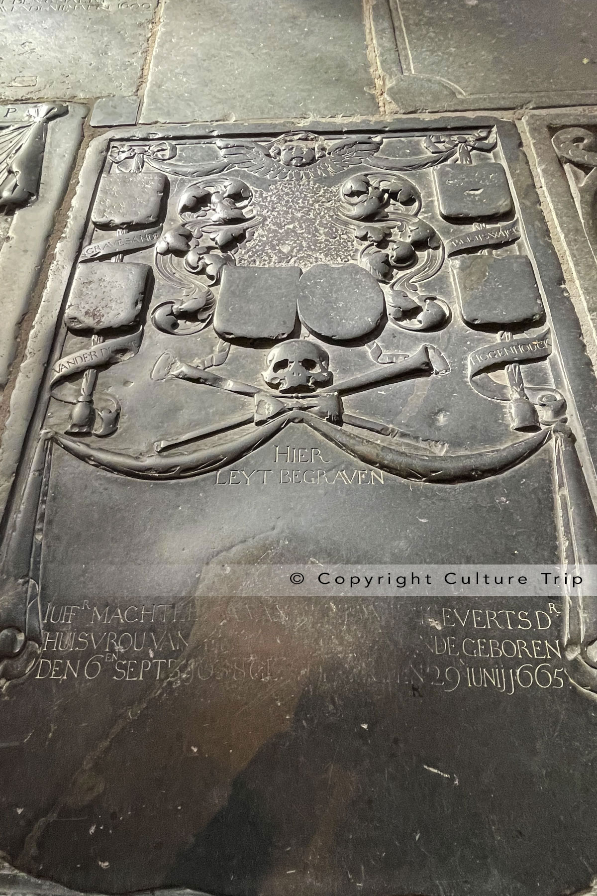 On y admire aussi les tombes des héros navals et des scientifiques tels que Piet Hein, Maarten Tromp et Anthonie van Leeuwenhoek. Elle sont cachées sous les dalles des traverses de l’église où sont inscrits les noms des défunts.