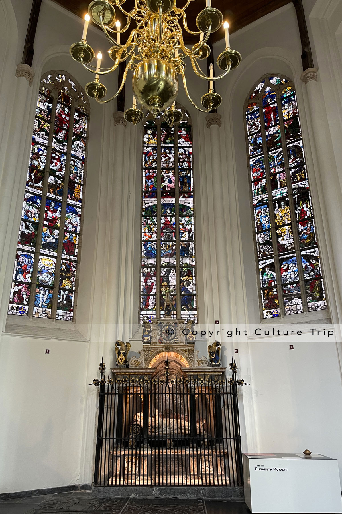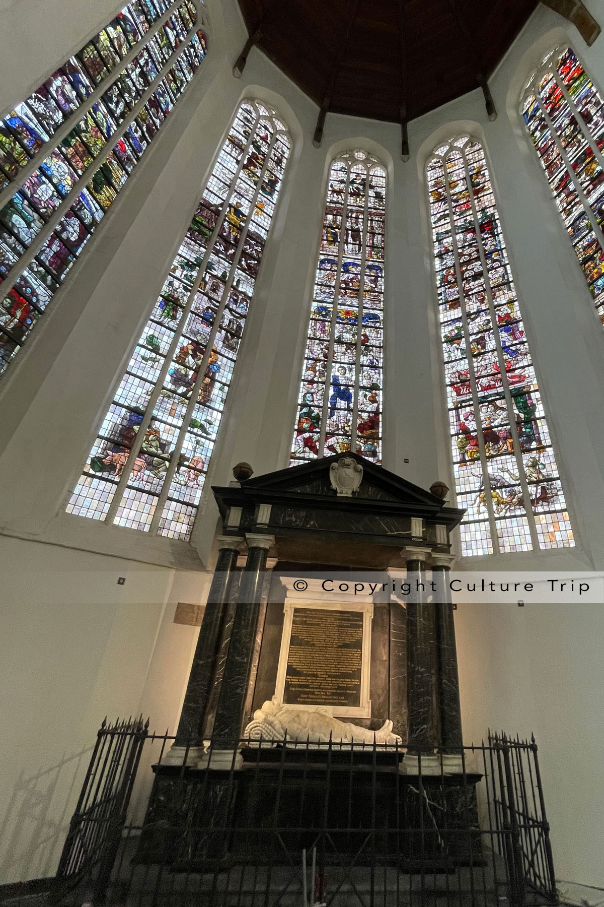 Guillaume d'Orange, dit également Guillaume Le Taciturne, fut assassiné à Delft le 10 juillet 1584. Il fut inhumé dans le chœur de l’église au-dessus du caveau royal en 1584. Le mausolée fut réalisé entre 1614 et 1620 par Hendrik de Keyser.