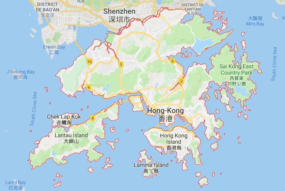 L'île de Hong Kong est située à l'embouchure de la rivière des Perles, sur sa rive orientale. C'est le cœur politique et le poumon économique de la ville. Elle fait face au quartier de Kowloon situé sur le continent.