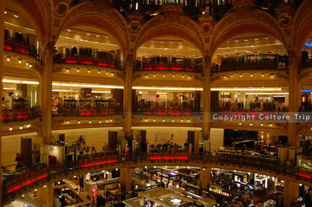 Les Galeries Lafayette, créées en 1894, consacrent de larges espaces au luxe, à la mode, la lingerie, la maroquinerie, la beauté, sans oublier les bijoux, les loisirs, la maison, la décoration et les arts de la table. Véritable temple de la consommation, le magasin recense des milliers d'articles, des plus accessibles aux marques les plus prestigieuses.