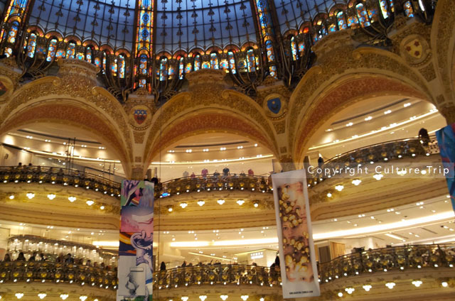 La célèbre coupole des Galeries Lafayette a été réalisée en 1912 par l'architecte Ferdinand Chanut. La grande verrière culmine à 43 mètres de hauteur. Les vitraux ont été conçus par Jacques Grüber, l'un des fondateurs de l'école de Nancy au début du XXe siècle. La coupole est en cours de restauration.