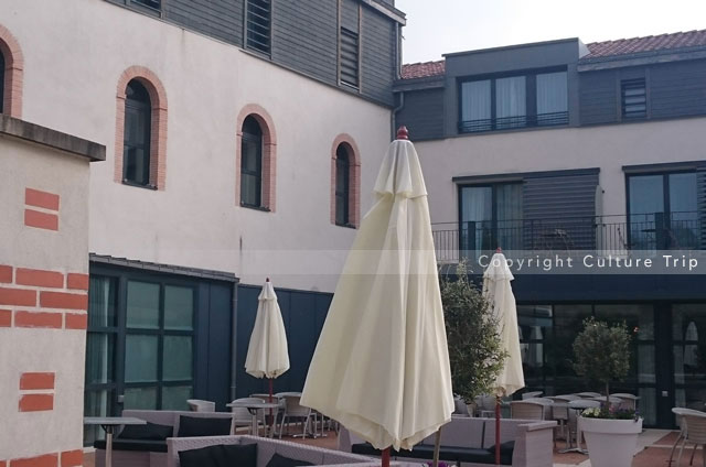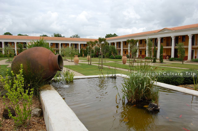 Les cent chambres se répartissent autour de sa large cour intérieure, bordée par un péristyle de 62 colonnes. La cour abrite un jardin méditerranéen où se côtoient oliviers, cyprès, romarin et lavande.