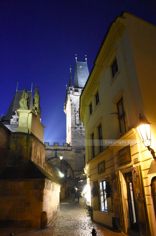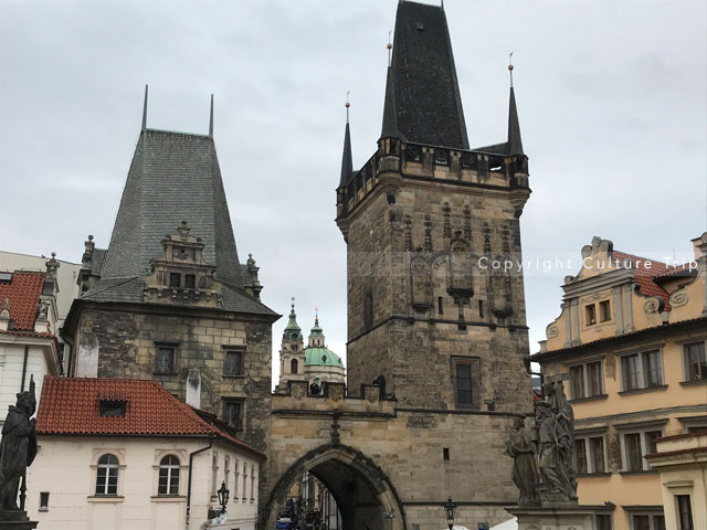 Du côté de Malá Strana, deux tours, de hauteur et de conception différentes, dominent le pont Charles. Elles sont reliées par une grande arche et marquent l'entrée du « Petit côté » de Prague.
