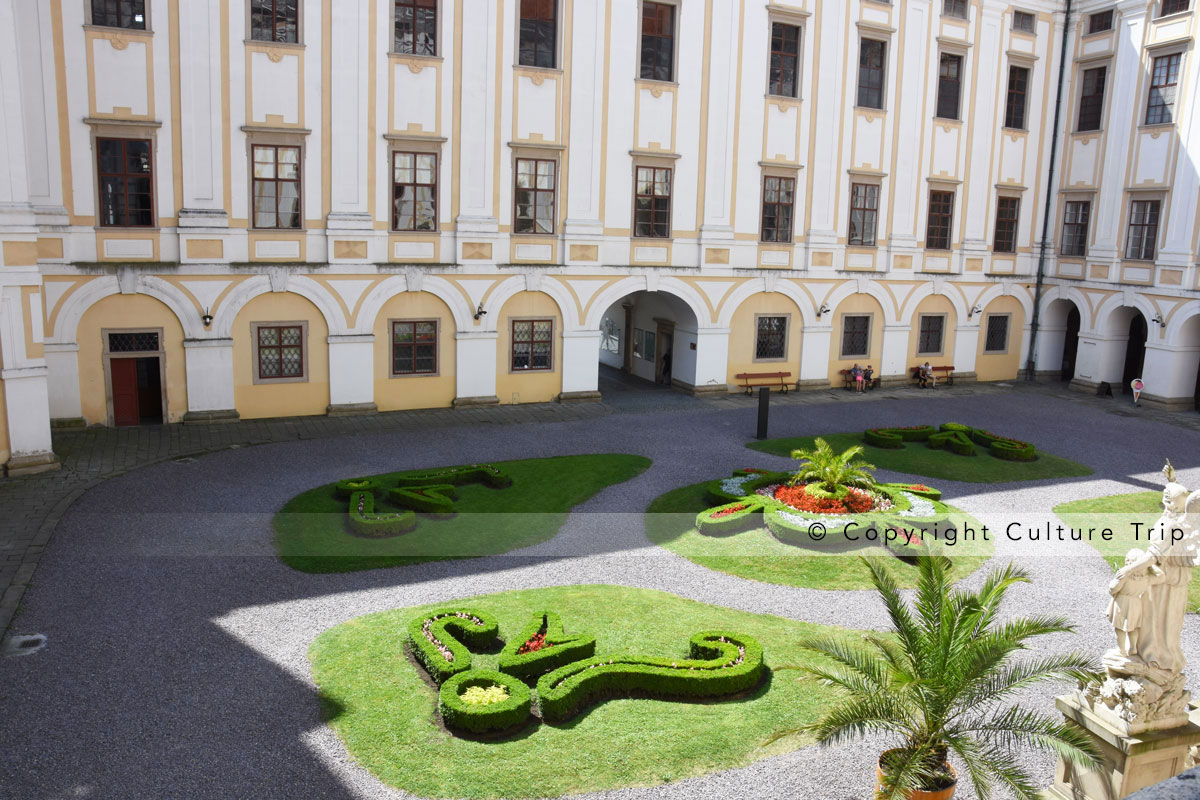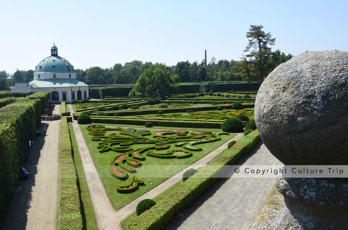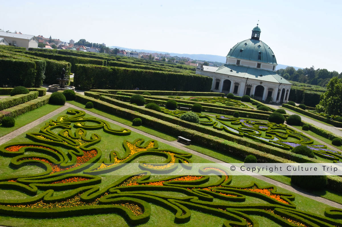 Le Jardin aux fleurs, aussi appelé le Jardin des plaisirs ou Lustgarten, représente une transition entre les jardins italiens de la fin de la Renaissance et les jardins baroques classiques à la française. Ce très beau jardin, situé à l'ouest du centre-ville de Kroměříž, comprend des labyrinthes et plusieurs ouvrages datés du XVIIe siècle. Il est aussi doté d'un jardin hollandais, d'un bassin, de fontaines et d'une loggia, d'une belle rotonde et aussi de serres et d'une orangeraie.