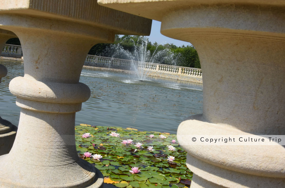 La colonnade, longue de 244 mètres, date du XVIIe siècle. Un escalier permet d'accéder à la partie supérieure afin d'admirer l'étendue des jardins à la française et la rotonde.