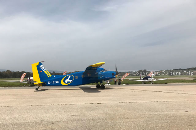 Après un indispensable briefing, les candidats aux sensations fortes embarquent à bord d'un avion.