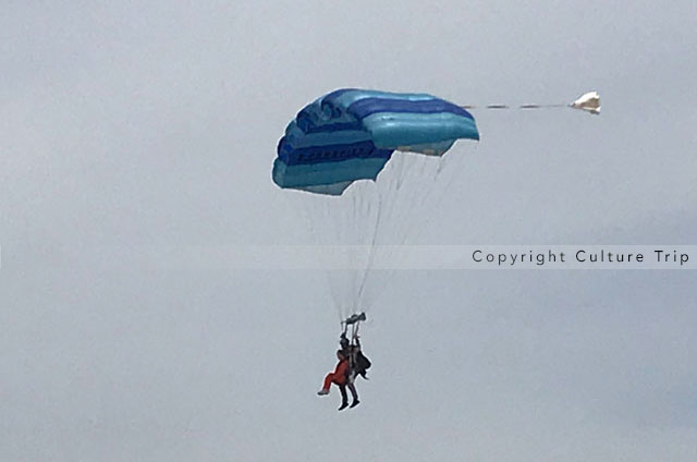 Selon l'option choisie, le saut en parachute s'effectue à 10 000 ou 15 000 pieds, soit 3 000 mètres ou 4 600 mètres.
