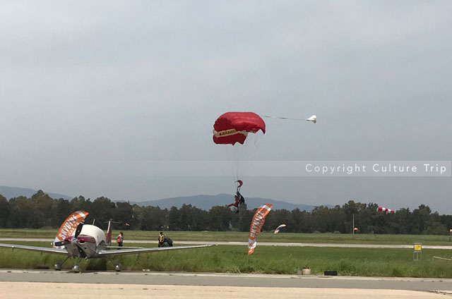 Les visiteurs sont autorisés à assister aux sauts depuis les hangars.