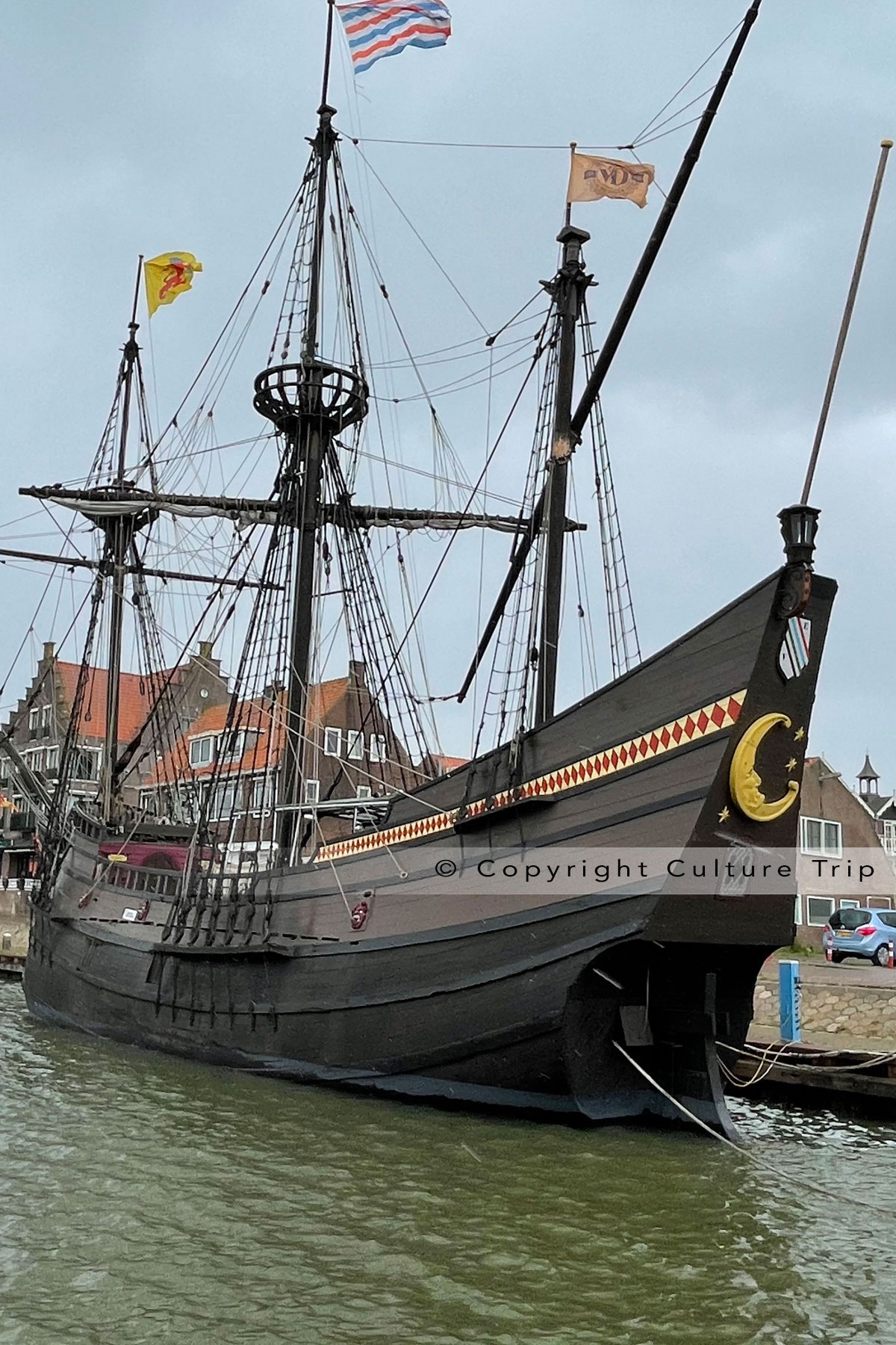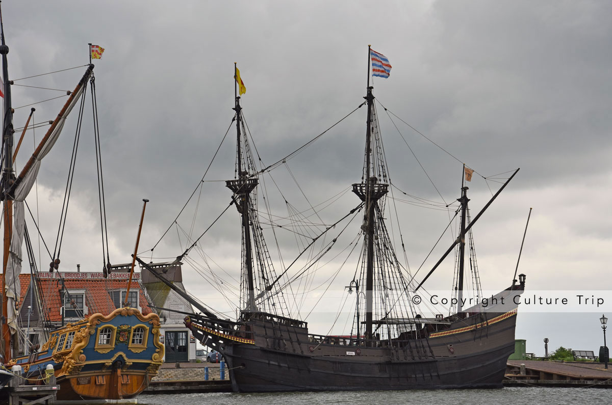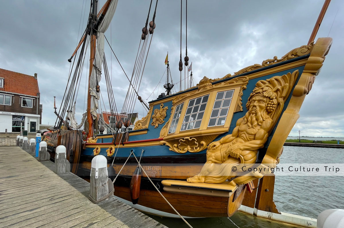 Dans le petit village de pêcheurs de Volendam, il faut aller jeter un coup d'œil dans le port où séjournent de vieux navires hollandais.