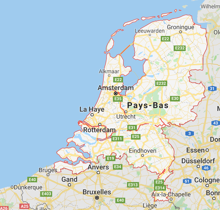 Villes principales : Amsterdam, Rotterdam, La Haye, Utrecht, Eindhoven.