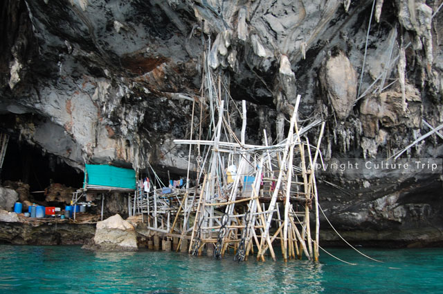 L’archipel de Phi Phi Ley est réputé pour abriter un important site naturel de production de nids d'hirondelles. Des échafaudages de bambou sont accrochés aux immenses grottes calcaires des falaises par les chasseurs de nids pour leur permettre d'accéder jusqu'aux nids.