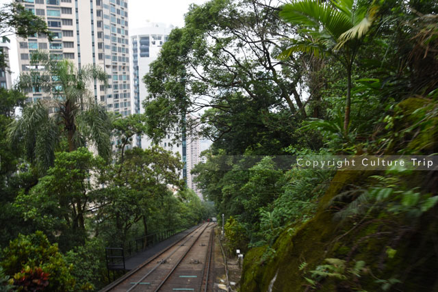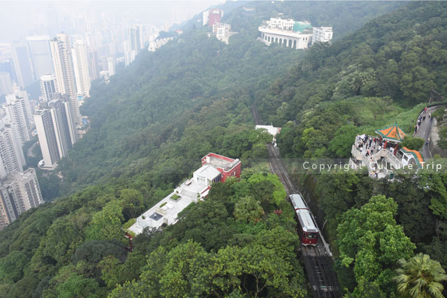 Le trajet avec le Peak Tram offre de jolis points de vue sur la ville sur une distance d'un kilomètre et demi. La pente est l’une des plus raides au monde.