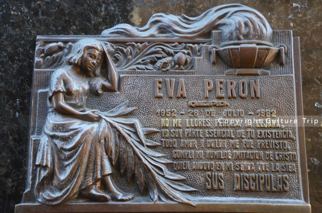 Le caveau d'Eva Perón est toujours l'objet d'un culte perpétuel. C'est le seul tombeau du cimetière à être régulièrement fleuri.