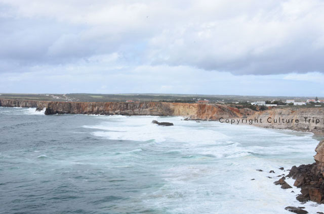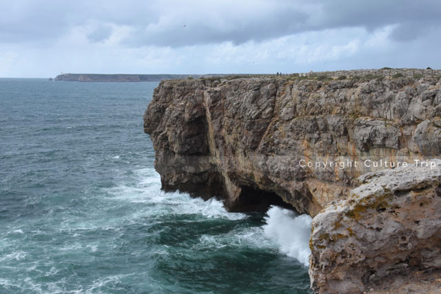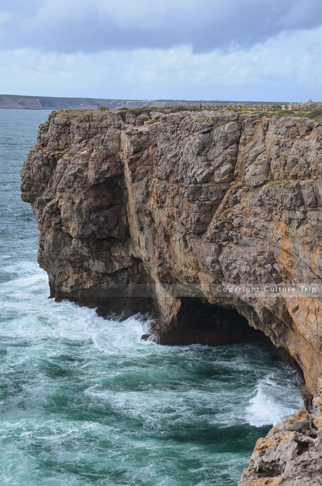 Les vagues vigoureuses de l'Atlantique viennent s'écraser sur ses hautes falaises qui peuvent atteindre la hauteur de 80 mètres. La force du vent empêche la croissance végétale et donne cet aspect désertique et sauvage qui fait le charme du cap Saint-Vincent.