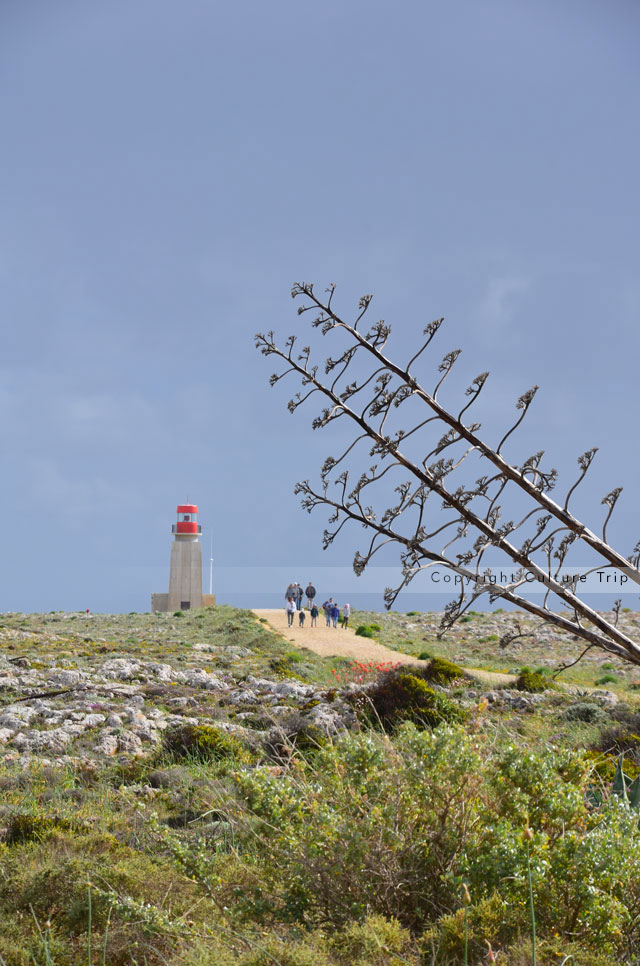 Un chemin de pierres fait tout le tour du terre-plein de la forteresse de Sagres. Il permet d'observer à la fois les falaises, les bâtiments, la faune et de la flore.