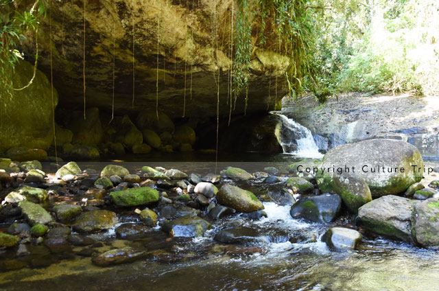 Les lieux ont été ouverts à la visite en 1967 par l'agronome belge Joseph Albert Van Sebroeck arrivé au Brésil en 1947. La cascade est située sur la Fazenda da Toca, l'une des dernières grandes exploitations d'Ilhabela. C'est la dernière distillerie de cachaça sur la trentaine que l'île comptait autrefois avant la création du parc naturel.