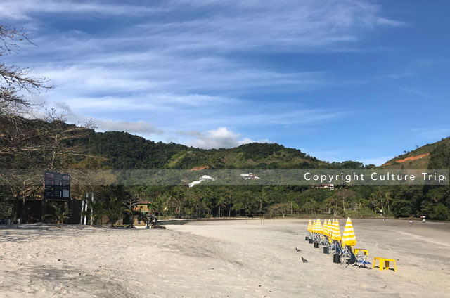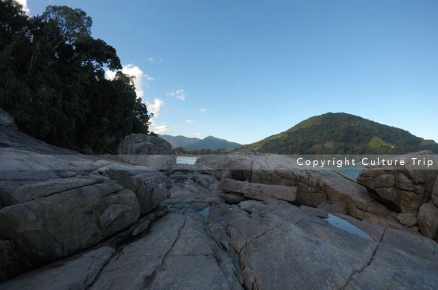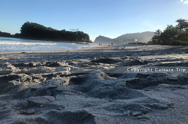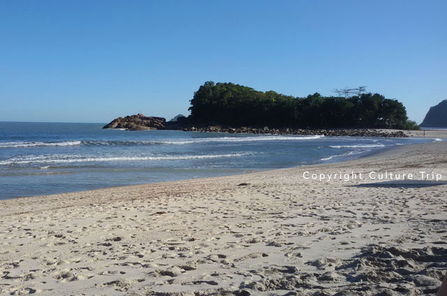 La plage de Maresias est entourée de collines à la végétation luxuriante