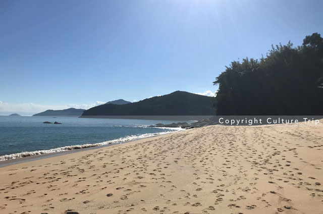 Les deux plages sont séparées par une péninsule étroite couverte d'une végétation luxuriante.