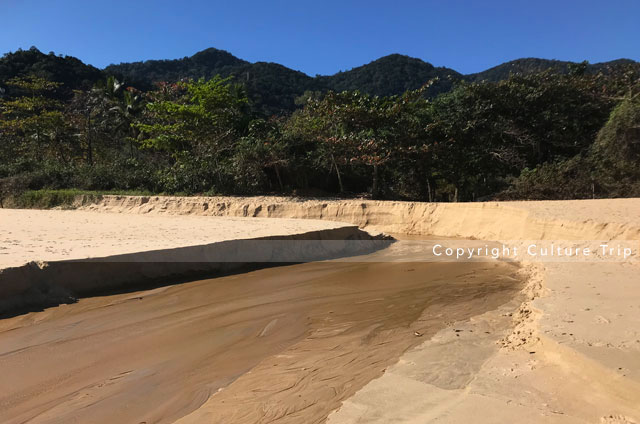 A cet endroit, une petite rivière peu profonde, le Rio Camburi, rejoint de la mer.