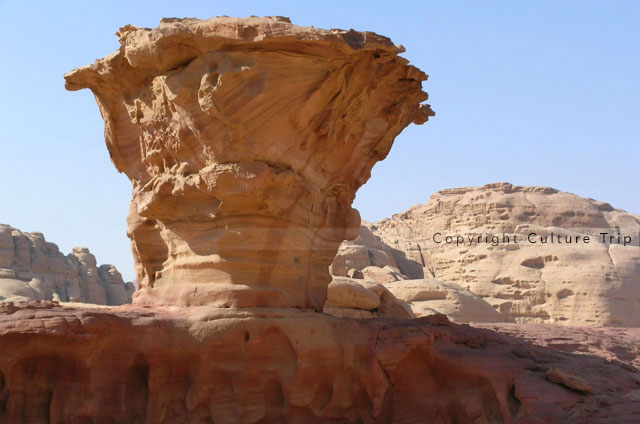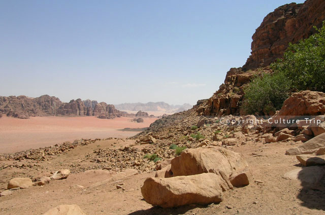 Au sud de l'Arabah, la vallée du Wadi Rum offre de superbes paysages désertiques comportant des canyons, des arches naturelles, des falaises et des grottes. Des vestiges archéologiques et des inscriptions gravées dans la roche témoignent de 120 siècles d'occupation humaine. La vallée a été le lieu de plusieurs tournages de films, dont « Lawrence d'Arabie » et « Planète rouge ».